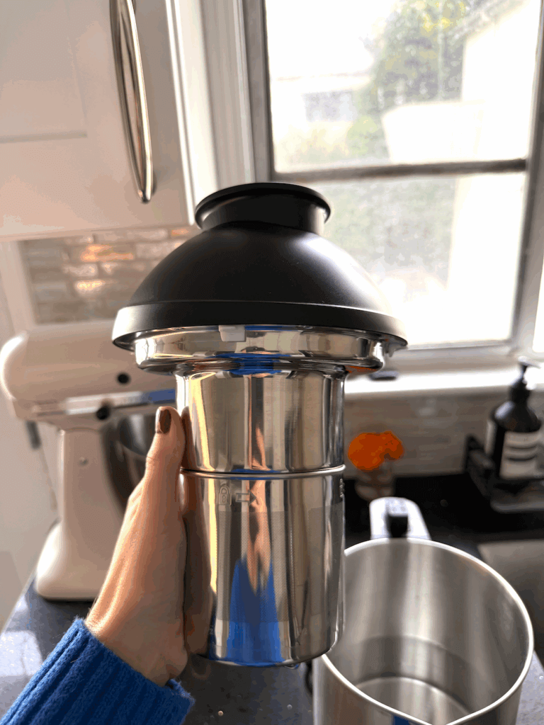 3. Attach the filter basket to the top of the Almond Cow and twist to secure.