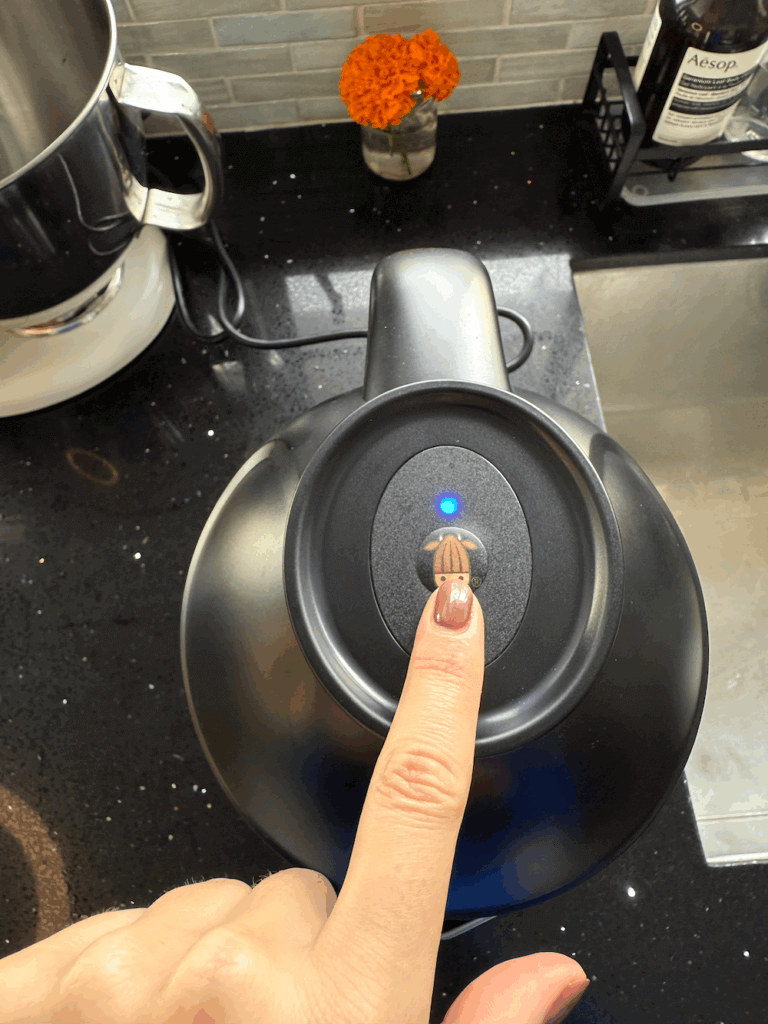 Very satisfying to press that button, I might add. The Milk Maker will run through three automatic stages, and when the light stops flashing your milk is ready!